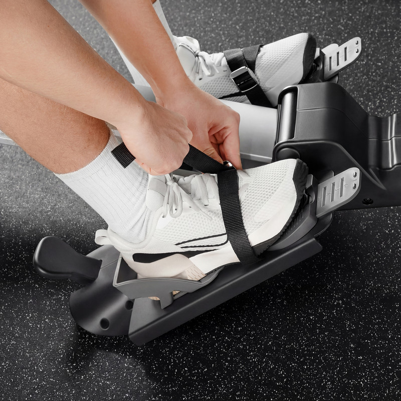 Zastosowane koło zamachowe o wadze 4 kg zapewnia płynną i stabilną pracę urządzenia oraz odpowiedni poziom oporu, umożliwiając realizację zarówno treningu wytrzymałościowego, jak i siłowego. Konstrukcja wioślarza została zaprojektowana tak, aby ruch był naturalny i równomierny na całej długości pociągnięcia. Zakres przesuwu siedziska wynoszący 100 cm gwarantuje komfortowy, pełny zakres ruchu, również dla osób o wyższym wzroście.